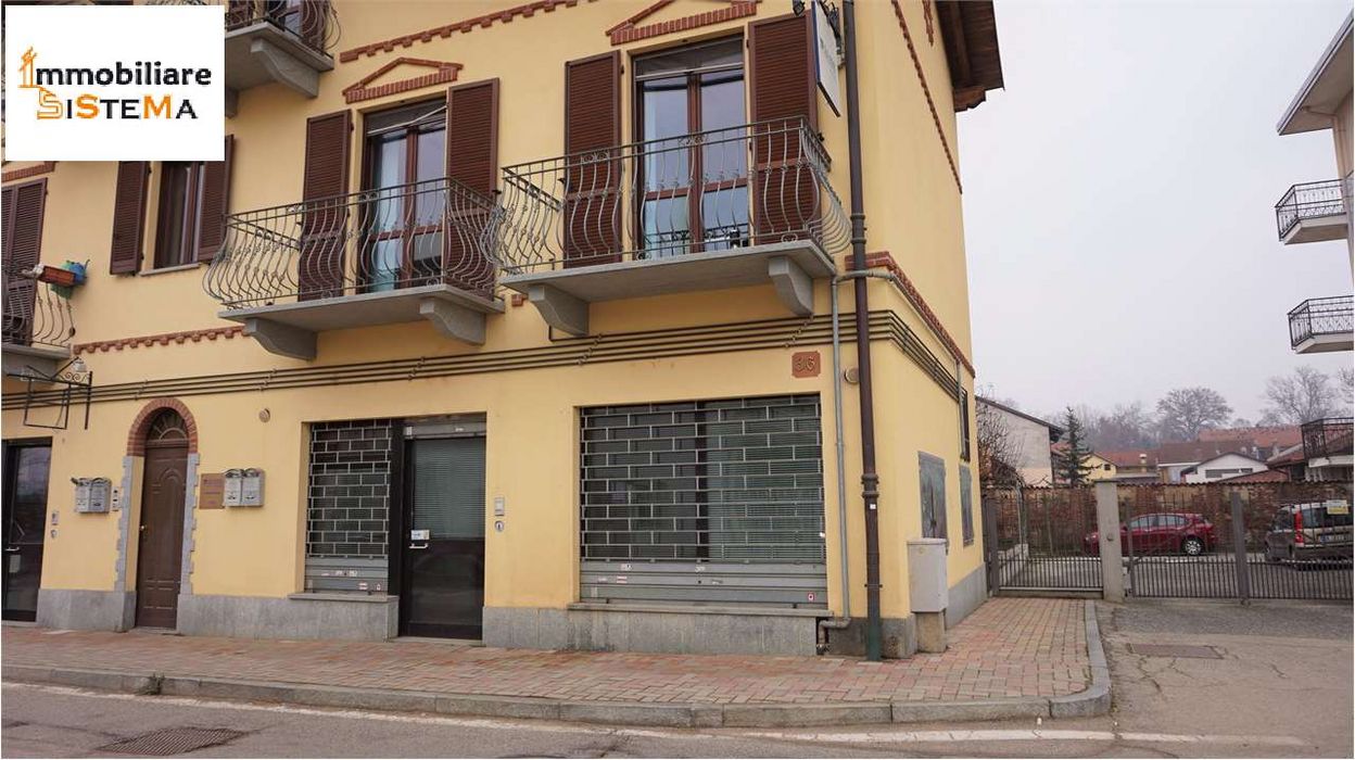 Proponiamo in locazione nel Comune di Santena, a pochi passi dalla piazza principale, ottimo locale commerciale ad uso ufficio/negozio con superficie catastale di 83 mq. Il locale è così suddiviso: locale commerciale con disimpegno e servizio al piano terra, con due ampie vetrine lato strada; con comoda scala interna in marmo si accede al piano interrato che ospita un ampio locale di sgombero utilizzabile come archivio/magazzino. L'intero stabile e' stato oggetto di una totale ristrutturazione, risalente al 2008, con demolizione del precedente fabbricato e ricostruzione per usi residenziali e commerciali. I locali sono in ottime condizioni, immediatamente utilizzabili senza necessita' di ulteriori interventi. Il riscaldamento e' autonomo a metano. Le spese condominiali annuali ammontano ad circa 200 euro. CLASSE ENERGETICA: E 348,74 kWh/m2 a