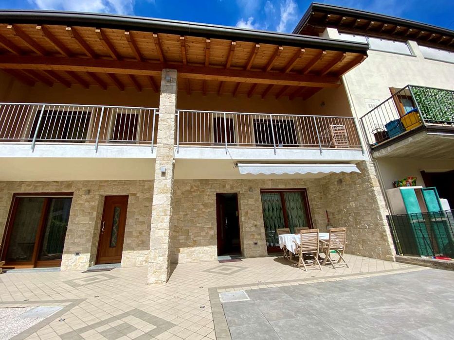 Villa a schiera ottimamente rifinita composta da ingresso sulla zona giorno, cucina abitabile, disimpegno e servizio al piano terra, tre camere e ampio bagno con balcone e ampio terrazzo coperto al piano primo. Completano la proprietà un ampio box con lavanderia e cantina. Possibilità di arredo. Terraced house excellently finished comprising entrance to the living area, kitchen habitable, hallway and service on ground floor, three room and large bathroom with balcony and large covered terrace on the first floor. A large box with laundry and cellar completes the property. CLASSE ENERGETICA: In fase di valutazione