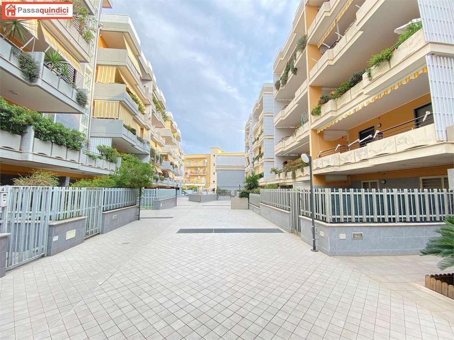 Nei pressi del Palazzetto dello Sport, ben collegato con chi proviene dalla direzione Bari Blu, in complesso recintato, proponiamo in vendita appartamento sito al primo piano con ascensore composto da: ingresso su soggiorno a vista, cucina abitabile, disimpegno, camera da letto matrimoniale con bagno in camera, due comode camere per i ragazzi, secondo bagno e ripostiglio. Due ampi balconi. Completa l'appartamento un box auto al piano interrati di mq 18 circa. CLASSE ENERGETICA: D