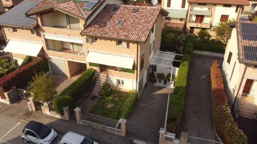 Zona parco Amarcord, villa d'angolo con giardino privato. Disposta su tre livelli: al piano terra ampia taverna con cucina, lavanderia/bagno e garage, piano rialzato portico d'ingresso, soggiorno, eventuale cucina, bagno, al piano mansardato 3 camere e bagno. Elegantemente rifinita. LIBERA A BREVE. CLASSE ENERGETICA: D