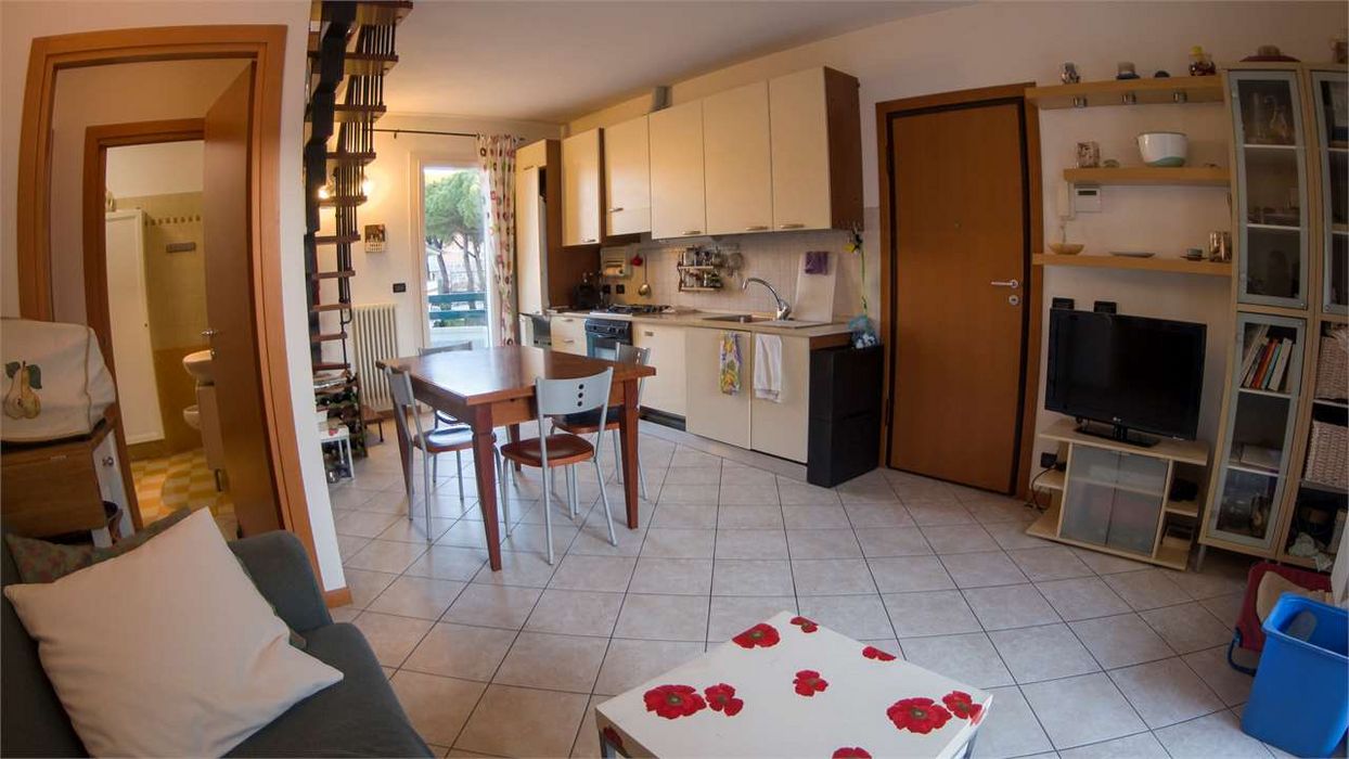 Proponiamo in vendita appartamento di recente costruzione con ingresso indipendente posto al primo e ultimo piano. L'appartamento è composto da ampio soggiorno con angolo cottura servito da due grandi balconi, una camera da letto matrimoniale e un bagno con box doccia al piano principale, da un'altra camera matrimoniale servita da bagno con box doccia al piano mansardato. L'appartamento è munito di riscaldamento autonomo, aria condizionata, una cantina e un posto auto di proprietà al piano sottostrada CLASSE ENERGETICA: In fase di valutazione