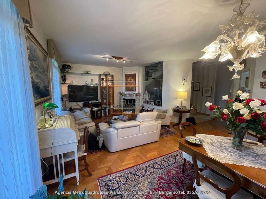 In contesto residenziale ricercato, porzione di casa indipendente di mq 185 con giardino godibile antistante di mq 113. Giardino retrostante di mq. 95 con box quadruplo e possibilità di parcheggio fronte box. Piano terra grande soggiorno con camino e cucina spaziosa oltre a bagno al piano finestrato - Piano primo: tre camere da letto grandi e bagno padronale. Completano la proprietà al piano semi interrato, a livello box, l'ingresso, godibile taverna finestrata fuori terra, studio, stireria, cantina e terzo bagno. Secondo ingresso dalla zona giorno. L'immobile è in ottimo stato con finiture raffinate, ben tenuta nessuna manutenzione richiesta, pronto da abitare. La palazzina anche. Molto luminoso e in contesto tranquillo e signorile. Tutte le nostre proposte sono visionabili sul sito www.metroquadroimmobiliare.eu Tel. 035.233735. CLASSE ENERGETICA: F