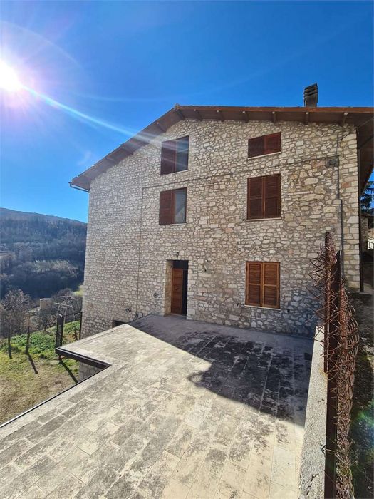 Cascia nella parte più alta della cittadina, sopra alla basilica di S.Rita in posizione panoramica e assolata proponiamo in vendita esclusiva ampia porzione di rustico in buone condizioni generali disposto su due livelli così composto: Al piano terra troviamo un' ampio garage, e un' altro locale uso magazzino che potrebbe essere adibito anche a taverna visto il giardino adiacente, poi tramite una scala in muratura si accede all'ampio terrazzo vivibile di 50 m2 c.a da dove si puó ammirare un meraviglioso panorama che dà sulla cittadina sottostante e sul monte Vettore. Dal terrazzo si accede all'abitazione dove troviamo un' ampio disimpegno, una cucina abitabile, una sala da pranzo 2 ampie camere matrimoniali, un' altro disimpegno, che nell' eventualità potrebbe diventare una 3' camera, e un locale a volta che potrebbe essere destinato a qualunque altro uso, o 2' bagno, o studio o dispensa. Le condizioni generali dell' abitazione sono buone, con angolo cottura bagno e impianto elettrico nuovi, quindi abitabile da subito. La superficie dell' appartamento è di 130 m2 circa calpestabili, l' impianto di riscaldamento è termoautonomo a metano. Completa la proprietà un meraviglioso giardino di 500 mq c.a. completamente recintato. Il prezzo di vendita richiesto è di euro 179.000 trattabili. Ottima come prima o seconda abitazione. CLASSE ENERGETICA: G