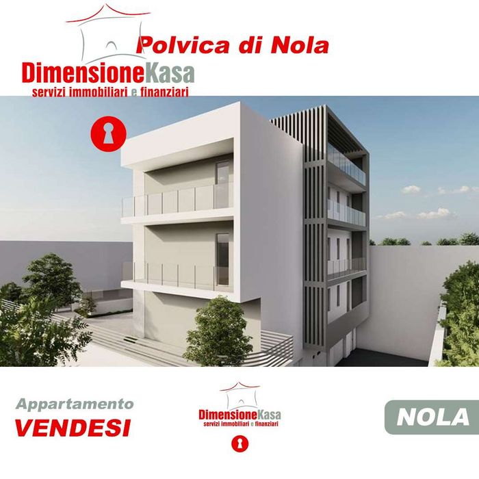 DimensioneKasa Nola propone una nuova costruzione: un complesso residenziale composto da soli 3 appartamenti di 110 mq.Ogni appartamento dispone di un' ampia zona giorno, 3 camere da letto e doppio accessorio, con ampie balconate sui 3 lati per circa 50mq.Gli immobili sono dotati di box auto con possibilita' di soppalcare, spazi esterni privati , con terreno esclusivo di 100/120mq per ogni appartamento con possibilita' di chi necessita di realizzare una piscina. La costruzione e' dotata di ascensore,che accede fino al terrazzo panoramico esclusivo(soluzione a parte), di antifurto per ogni appartamento , impianto elettrico serie Living "Now" , infissi in pvc 5 camere, vetro camera e tapparelle termiche, con impianto riscaldamento gpl o stufa a pellet, con possibilita' di scegliere le finiture interne.La soluzione si trova in via Polvica, vicino al centro commerciale vulcano buono, cis di Nola, zona asi di Marigliano-Nola.posizione centrale a pochi metri da tutti i servizi pricipali. CLASSE ENERGETICA: 98 kWh/m2 a