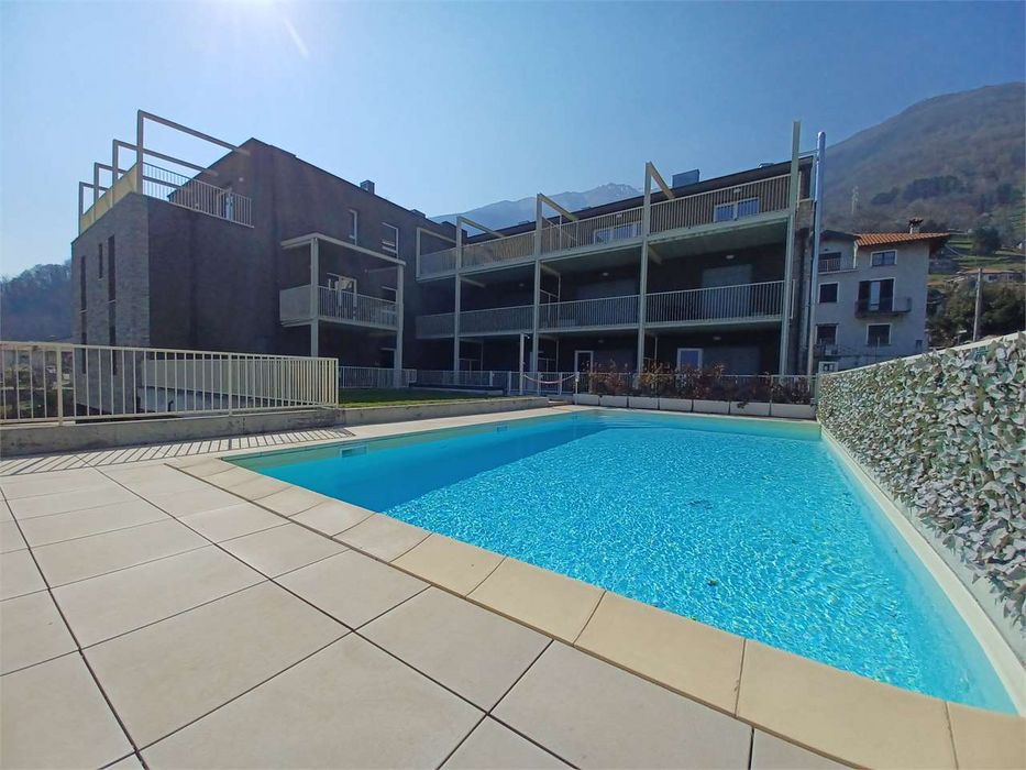 Musso: a pochi minuti dal lago in complesso residenziale con piscina, locale fitness e spa interna, nuovissimo appartamento sito al piano secondo/ultimo, servito da ascensore. L'appartamento di circa 75 mq vanta ampia terrazzo coperto con bellissima vista lago ed internamente comprende: ingresso, soggiorno, cucina a vista, 2 camere da letto, bagno e terrazzo. Finiture di alta qualità come pavimenti in parquet in tavole di Rovere Naturalizzato, lastre gres 30x120 per il bagno e gres 60x60 per terrazzo. La proprietà comprende inoltre un'autorimessa al piano seminterrato. Soluzione ideale da adibire come investimento e casa vacanza sul lago. CLASSE ENERGETICA: A+