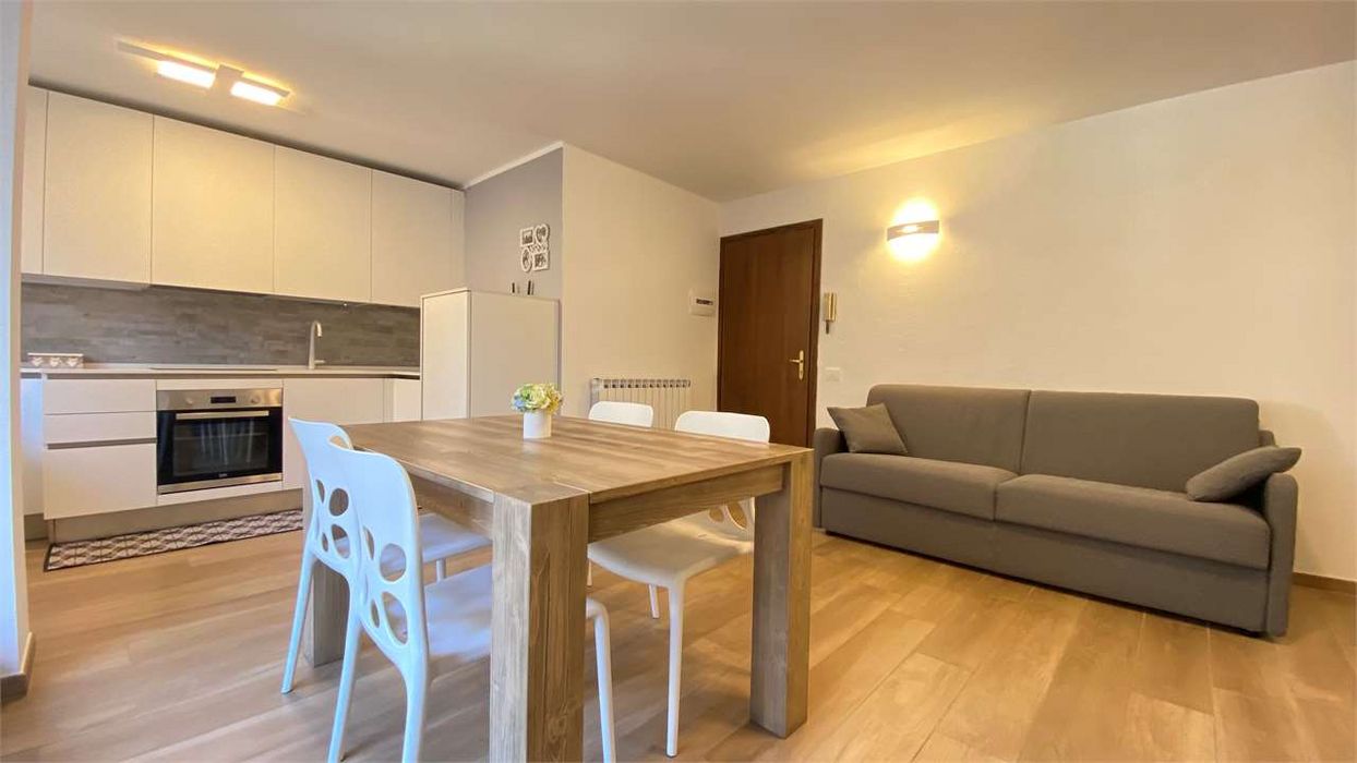 In centro paese, al primo piano del complesso condominiale "Anna" vendiamo appartamento di 60 metri quadrati. L'immobile è composto da ingresso, soggiorno con uscita sul balcone, angolo cottura, disimpegno, camera da letto, bagno con doccia e sanitari sospesi. L'appartamento è completamente ristrutturato, gode di una splendida vista panoramica e viene venduto arredato. A completamento della proposta immobiliare una cantina ed un posto auto coperto all'interno della palazzina. CLASSE ENERGETICA: In fase di valutazione