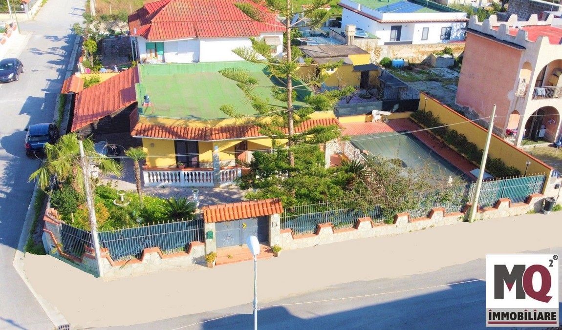 VILLA CON PISCINA E AMPIO GIARDINO - LOC. LEVAGNOLE - MONDRAGONE - Rif. V2575 In zona abitata, a pochi metri dalla chiesa di San Giustino e a circa 100mt dal mare, proponiamo in vendita meravigliosa villa singola in ottimo stato su unico livello di 120mq circa. La villa è composta da ampio patio d'ingresso, salone doppio con camino, 3 camere da letto, ampio disimpegno, cucina e 2 bagni. La soluzione è circondata da uno splendido giardino di 400mq circa piantumato sia con piante da frutto che da fiore. La villa è dotata di un ampio gazebo in legno ideale per pranzi e cene all'aperto e da una splendida piscina interrata con spazio relax, angolo bar e docce esterne. Deposito attrezzature, ripostiglio e seconda cucina esterna. Caratteristica terrazza/solarium di 130mq circa con meravigliosa vista panoramica alla quale si accede da una comoda scala direttamente dalla zona piscina. Doppio ingresso carrabile. La villa viene venduta parzialmente arredata e completa di impianto di allarme con sistema di video-sorveglianza, aria condizionata, attrezzatura completa per la manutenzione e la pulizia della piscina. Contesto tranquillo. Ottima soluzione immobiliare utilizzabile sia come abitazione principale che come casa vacanza. APE [G]>175kWh/mq anno. Per informazioni Mq2 immobiliare Mondragone 0823.978.491 - 348.6933243 - mq2immobiliare@gmail.com