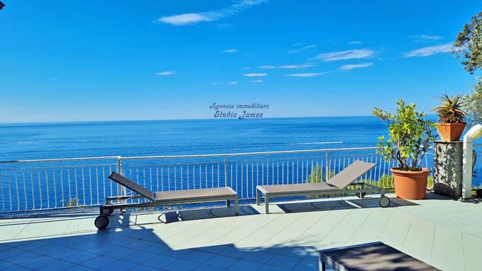 Dossier 26 https://www.immobiliarestudiojames.it/dossier-26-1.html Un terrazzo di mq.65 sul mare, ... per poter realmente abitare tra cielo, mare e macchia mediterranea. Una natura che ti entra in casa anche attraverso le vetrate, ... per poter vivere e respirare a pieni polmoni. Immediatamente sotto, un’area verde che digrada fino al mare, ... per tuffarsi ed immergersi in un clima di assoluta privacy. Una zona esclusiva, un paradiso di rara bellezza, ... per potersi rilassare profondamente, sdraiati al sole, nel silenzio del bosco, tra il canto degli uccellini e il frangersi delle onde, senza nessun rumore di strada, autostrada, ferrovia .,,,, Davanti una ampia distesa di mare e lateralmente Portofino da un lato e Sestri Levante dall’altro. Un immobile particolare per inserimento paesaggistico ... per apprezzare nuove sensazioni. Una proprietà composta da 3 appartamenti, non grandi, vicini, ma indipendenti … e con terrazzi antistanti. Una propria cabina balneare in muratura, con la relativa porzione di terrazzino antistante, permette di godere di una struttura balneare privata, con accesso non solo ad un mare bellissimo, ma anche ad una piscina, con acqua di mare depurata, oltre a solarium, servizi, … Un box auto completa la proprietà. Una proprietà comoda ... per avere il meglio per sé stessi e per chi si ama. Questi tre appartamenti si raggiungono facilmente dalla strada carrabile privata e sono vicini alla stazione di partenza dell’ovovia per scendere nella struttura balneare. L’appartamento principale (foto 26 A) si compone di ingressino, soggiorno d’angolo con ampie vetrate, cucinotto attrezzato, cameretta con due letti con bagnetto/ripostiglio, bagno e ripostiglio – superficie utile circa mq.55 e superficie catastale mq.82 - tutto fronte mare, ad eccezione del bagno. Tutti gli ambienti prospettano sul terrazzo a livello - di circa mq.65 - estremamente vivibile quale living e zona pranzo all’aria aperta, coperto totalmente, volendo, da tende per ripararsi dal sole ed in parte per chiudersi quasi a stanza. Una doccia in muratura ed alcune aiuole completano questo meraviglioso spazio esterno. Ovviamente sia le tende da sole sia le tapparelle di tutte le vetrate dell’appartamento sono state automatizzate. Parziale impianto di condizionamento d’aria e riscaldamento autonomo, con calderina a gas metano per la produzione di riscaldamento e acqua calda, classe energetica G ipe 230,5140 kWh/m2 anno. L’appartamentino sottostante (foto 26 B) si compone di soggiorno con zona cottura, piccola stanza, ripostiglio con finestra e bagno – tutto fronte mare - superficie utile circa mq.32 e superficie catastale mq.46 - oltre ad una balconata antistante di mq.9, da cui si accede anche con ingresso indipendente. Riscaldamento autonomo con calderina a gas metano per la produzione di riscaldamento e acqua calda - classe energetica G ipe 287,8740 kWh/m2 anno. L’appartamentino a fianco (foto 26 C) si compone di un monolocale con bagno - superficie commerciale mq.31 e superficie catastale mq.30 – oltre ad uno spazio esterno antistante di circa mq.29. Riscaldamento autonomo con climatizzazione invernale/pompa di calore - classe energetica G ipe 170,4810 kWh/m2 anno. Posto sulla prima collina tra Chiavari http://www.comune.chiavari.ge.it e Zoagli http://www.comune.zoagli.ge.it, si trova in frazione di S.Andrea di Rovereto, ma sotto la Via Aurelia. Un servizio autobus lo collega a tutte le maggiori cittadine del Golfo del Tigullio, da Santa Margherita Ligure https://comunesml.it/ ad oltre Sestri Levante http://www.comune.sestri-levante.ge.it/, ed un'altra linea collega la frazione soprastante di S.Andrea di Rovereto a Chiavari. Nelle frazioni collinari, se si ha voglia di fare una passeggiata, si può raggiungere un mini-market, che effettua anche consegne a domicilio, un bar, con rivendita tabacchi e giornali, ed una trattoria. Se ama il trekking ecco il link di una mappa interattiva dei sentieri nella zona circostante https://www.siriobluevision.it/mappeinterattive/chiavarilavagna-studiojames/ Due minuti dal casello autostradale di Chiavari.