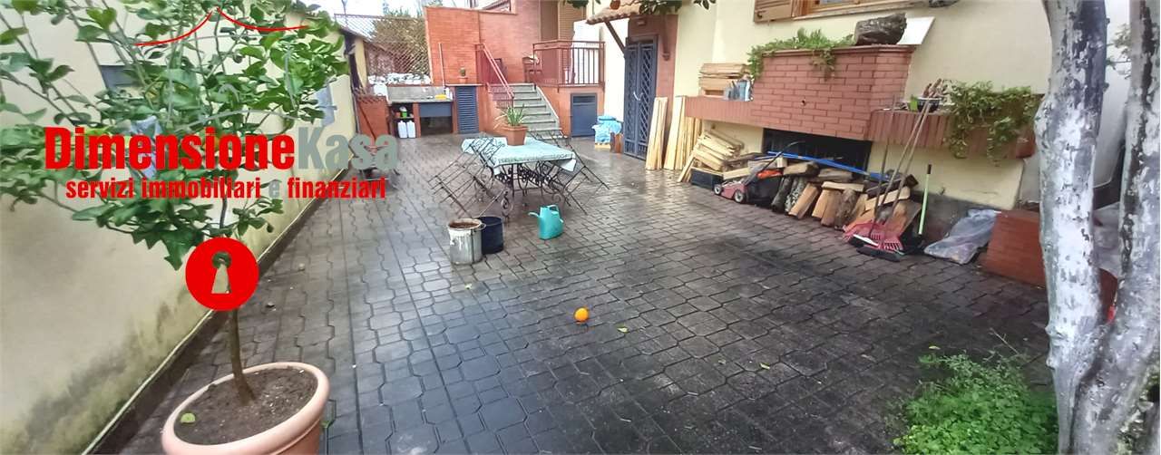 Villa libera su tre lati, sviluppata su 3 livelli, con ampio spazio esterno. La soluzione ha una metratura di circa 100 mq a piano, 300 mq complessivi, situata a Nola nei pressi della Villa Comunale e della Stazione della Ferrovia dello Stato, ed è così composta: Piano Rialzato - Ingresso in ampio Salone con Camino, Cucina, Sala da pranzo e Bagno. Piano Primo - 3 Camere da letto, 2 Bagni e 2 Balconate. Piano Seminterrato - ampia Tavernetta con Camino, Cucina in muratura, Studio, Ripostiglio e Bagno. Il Seminterrato ha un doppio accesso sia da scala interna, che da un ingresso indipendente dall'esterno, ideale per trasformarlo in Ufficio. Completa la soluzione un Giardino in parte pavimentato e in parte a verde di circa 250 mq, oltre ad un Terrazzo di copertura di circa 120 mq. Inoltre è possibile acquistare a parte un Box Auto di 28 mq per 2 auto ad EURO 30.000 Infissi in vetrocamera, Cancelli in ferro esterni, Impianto di riscaldamento con Termosifoni e stufa a Pellet. L'immobile si presenta in buone condizioni. Contattaci al numero 081 5129034 Whatsapp 377 0290781 CLASSE ENERGETICA: F 1808 kWh/m3 a