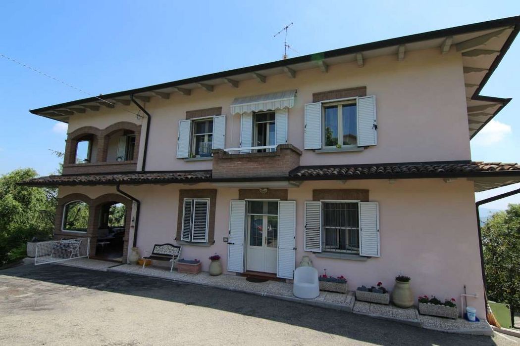 Proponiamo in vendita in bellissima zona panoramica a cinquecento mt. dal centro storico di Baiso , villa singola con due unità abitative. Al piano terra la prima unità immobiliare comprende: ingresso soggiorno con ulteriore salone con balcone di pertinenza, disimpegno, due camere matrimoniali e bagno; la scala di collegamento interno ci porta al piano primo dove troviamo la seconda unità immobiliare così suddivisa: ingresso, ampio soggiorno con balcone ed ulteriore zona pranzo, cucina abitabile con balcone, disimpegno, due camere matrimoniali e due bagni di cui uno con balcone. Al piano seminterrato troviamo un ampio portico dove vi è un ingresso indipendente che accede all'interno di due vani ad uso lavanderia, cantina, e due vani ad uso dispensa, con possibilità di ricavare anche a questo livello un'ulteriore unità semiindipendente. Completano la proprietà, un ricovero attrezzi , duecentocinquanta mq. di giardino ed area cortiliva che circondano l'immobile ed ulteriori seimilaseicento mq. di terreno agricolo adiacenti. CLASSE ENERGETICA: In fase di valutazione