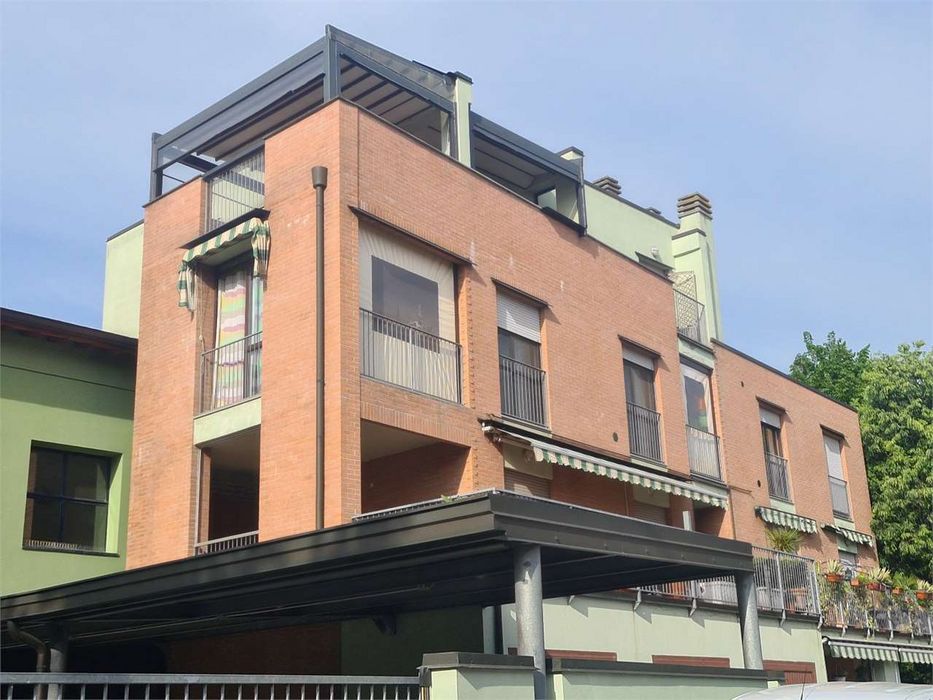 Rubiera zona Parco vendesi appartamento su 2 livelli in palazzina costruita in mattoni faccia vista nel 2006. L'immobile è situato al secondo piano, ed è servito da ascensore. L' appartamento è composto da ingresso, sala, cucina abitabile servita da una ampia loggia con vista parco e bagno con accesso ad una ulteriore loggia. Al terzo piano vi sono due camere da letto, un bagno ed un ampia terrazza panoramica con copertura elettrica estendibile e con tendaggi laterali. Completano al piano terra due cantine. Media Case Real estate ag Rubiera CLASSE ENERGETICA: In fase di valutazione