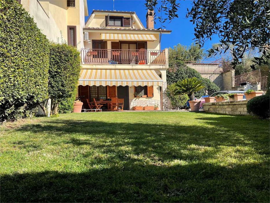 Riano nell'elegante centro residenziale in Via Valle Braccia, proponiamo in vendita una VILLA BIFAMILIARE con giardino privato che circonda l'immobile sui tre lati di circa 600 mq. dove poter parcheggiare internamente la propria autovettura e godere di ampi spazi esterni. La villa si presenta in ottime condizioni e si sviluppa su tre livelli. Al piano terra ci accoglie un grande salone con camino (con allacci per una cucina a vista), un dispegno divide il lato notte composto di una camera matrimoniale, una cameretta ed un bagno con vasca idromassaggio; la scala interna collega il piano superiore dove è stato realizzato un grande ambiente leggermente mansardato ed un bagno di servizio, la stessa scala collega il piano seminterrato che, grazie alla grande apertura all'esterno risulta particolarmente luminoso, qui troviamo una zona hobby con servizi. Ottime rifiniture: Portone blindato, infissi in legno doppio vetro, grate, persiane in metallo, zanzariere, tende da sole elettriche, climatizzatori, videocitofono, impianto termoautonomo, cancello elettrico. CLASSE ENERGETICA: G 175 kWh/m3 a