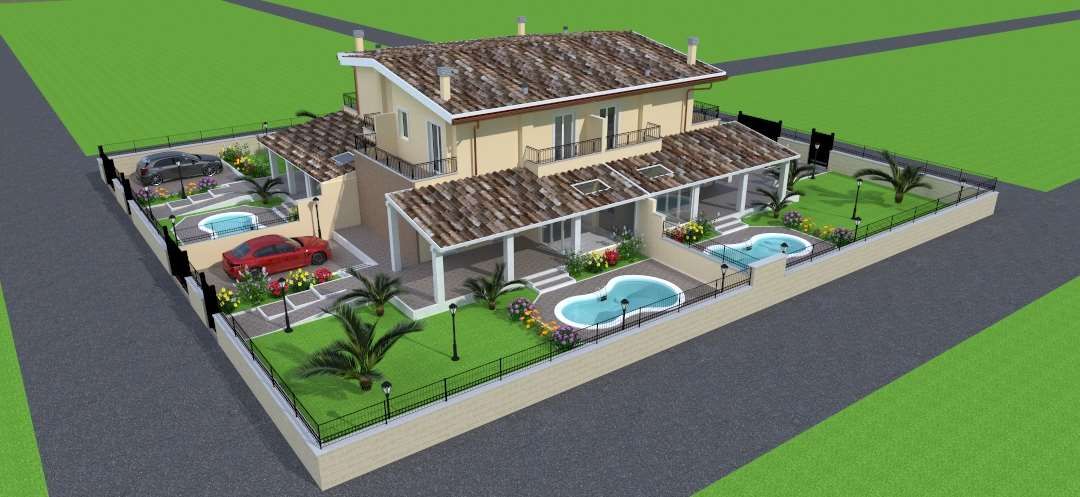 Pomezia edificate nell'elegante contesto residenziale di Parco della Minerva, a due passi dal centro di Pomezia e poco distante dalla località di mare Torvaianica, proponiamo in vendita un nuovo cantiere dove sono disponibili quattro VILLE QUAFRIFAMILIARI il cui elevato comfort abitativo ne costituiscono la loro unicità. Le ville si sviluppano su tre livelli e sono circondante da un ampio giardino con entrata indipendente e posti auto interni, se richiesto e quotate separatamente possono essere realizzate delle piscina private. Composizione tipo: PT: salone con angolo cottura, camera matrimoniale, bagno e grande e vivibile portico; P1°: due camere letto, bagno e due balconi; PS: ampio locale con servizi e intercapedine ispezionabile. Tutte le ville sono circondate da un giardino con posti auto interni. Se richiesto e quotato separatamente puo' essere realizzata una piscina privata e la rifinitura del giardino pronto effetto. Nel prezzo è incluso il costo dell'onorario del Notaio per il solo atto di acquisto (escluse imposte e tasse). Rifiniture di prima scelta: * Impianto Termoautonomo; * Portone blindato;* * Infissi in PVC taglio termico; * Pompe di calore caldo/freddo e deumidificatore; * Videocitofono; * Impianto fotovoltaico 4 KW; * Pannelli solari per acqua calda. Consegna prevista fine 2023 Prenotazioni Euro 369.000,00 + IVA Interessanti agevolazioni per classe energetica "A+" CLASSE ENERGETICA: A+