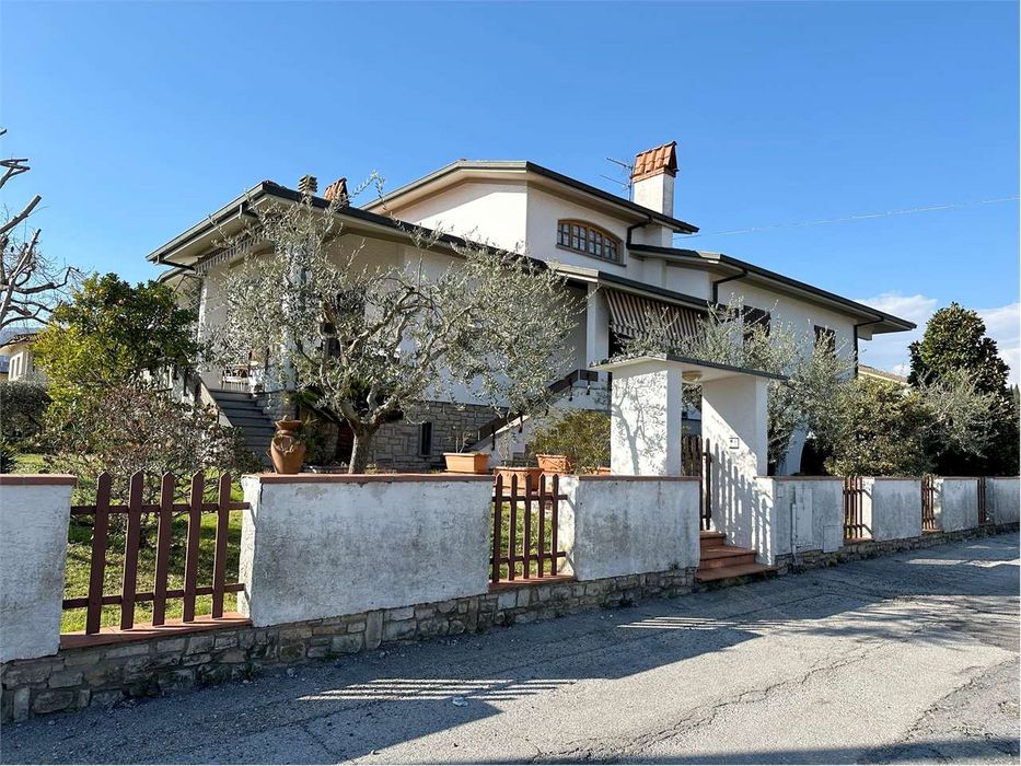 Pescia, in zona residenziale, villa signorile di circa 365mq disposta su tre livelli, ideale anche per due nuclei familiari, libera su quattro lati con ampio giardino. L'ingresso principale, al primo piano con accesso con scale esterne, conduce ad un ampio disimpegno, doppio salone con terrazzo, cucinotto, tinello con camino e accesso al giardino e ripostiglio; zona notte con tre camere matrimoniali bagno con doccia e bagno con vasca. Al piano superiore, mansardato, camera matrimoniale, camera singola, bagno e soffitta ad uso ripostiglio. Al piano terra splendida taverna con camino, forno a legna, bagno e locale lavanderia. Completano la proprietà garage e ampio porticato. CLASSE ENERGETICA: G 290 kWh/m2 a