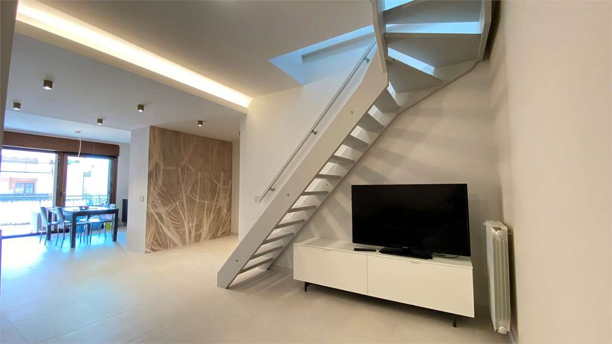 In posizione tranquilla e soleggiata, vicino a tutti i principali servizi, vendiamo appartamento appena ristrutturato di 200 metri quadrati sito al terzo piano di una palazzina. L'immobile è composto da un accogliente ingresso, ampio soggiorno, cucina a vista con accesso al grande terrazzo, due camere da letto di cui una con accesso al balcone, una pratica cabina armadio e bagno con doccia. Attraverso una moderna scala in legno si raggiunge il piano mansardato dove troviamo uno studio, una camera da letto ed un bagno. L'appartamento è stato recentemente ristrutturato con grande cura, utilizzando finiture di alta qualità, ed è venduto completamente arredato offrendo così un ambiente pronto per essere abitato. A completamento di questa interessante proposta immobiliare, è disponibile un'ampia autorimessa doppia, una cantina ed un posto auto ad uso esclusivo. Questa è un'opportunità unica per chi cerca una soluzione abitativa raffinata, in una posizione comoda e ben servita. Non perdete l'occasione di visitare questo appartamento che rappresenta un connubio perfetto tra stile, comfort e funzionalità. CLASSE ENERGETICA: C 93,07 kWh/m2 a