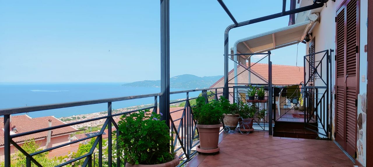Ascea Capoluogo: Appartamento al piano primo composto da salone con angolo cottura, camera da letto matrimoniale e bagno. Sottotetto con altre 2 camere e WC, completamente arredato, terrazzo con vista mare e posto auto coperto. 3 Km dal mare, 100 mt dai servizi.