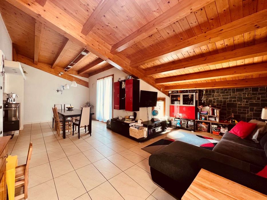 In nuova zona residenziale proponiamo in vendita accogliente trilocale mansardato posto al secondo piano e composto da ingresso sulla zona giorno, cucinotto e zona pranzo con ampio terrazzo a pozzo, disimpegno e bagno. Dalla comoda scala interna accediamo alla zona notte dove troviamo una camera matrimoniale ed una singola con terrazzino. Completa la proprietà un box auto. Termoautonomo. Per altre soluzioni visita il nostro sito paolobenaglio.com In a new residential area we offer for sale a cozy three-room attic apartment on the second floor and comprising entrance to the living area, kitchen and dining area with large well terrace, hallway and bathroom. From the comfortable internal staircase we access the sleeping area where we find a double bedroom and a single bedroom with small terrace. The property includes a garage. Climate control. CLASSE ENERGETICA: D