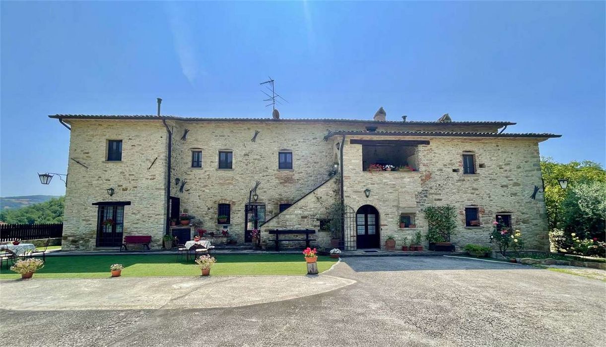 Prestigioso Casale con piscina privata, proponiamo in vendita nelle vicinanze di Città di Castello nella frazione di Monte Santa Maria Tiberina. L'immobile accuratamente ristrutturato è posto in una zona collinare, tranquilla e circondata da boschi che conferiscono al Casale una autentica atmosfera da fiaba. La copertura interna dell'edificio principale è di circa 600 mq. su tre livelli, oltre a tre annessi indipendenti, oltre ulteriore cubatura da poter sviluppare di circa 100 mq. Il tutto insiste su un area privata di circa 10.000 mq dove è stata realizzata una grande piscina con circostante area solarium. Internamente il casale che prevede una divisione degli ambienti interni per essere utilizzato anche come confortevole B&B, è composto al piano terra da un ingresso/reception, un ampio salone doppio con camino con affaccio sul magnifico pergolato posto al lato della struttura, da una cucina professionale che include locale lavaggio e dispensa, da un bagno e ulteriore corpo di fabbricato autonomo composto da soggiorno con angolo cottura, ampia camera da letto e wc. Al primo piano si sviluppa la principale zona notte dove sono state realizzate sei comode camere letto tutte con bagno privato, oltre una magnifica Suite composta di due camere letto con servizi. Sempre con la finalità dell'utilizzo della struttura oltre che per residenza privata anche come struttura B&B, tutte le camere sono dotate di riscaldamento autonomo. La scala interna in pietra serena collega il secondo ed ultimo piano dove è stato realizzato un appartamento completamente autonomo con grande cucina, un bagno, due camere letto e soffitta. Tutta la ristrutturazione del Casale è stata curata in ogni piccolo particolare con la finalità di mantenere intatte le caratteristiche tipiche della struttura originaria, troveremo infatti soffitti con travi in legno, pietra a vista e piastrelle in grès porcellanato. Pozzo privato, Cisterna per la raccolta acque di 2000 lt. Impianto GPL di 5000 lt. Impianto Fotovoltaico di 3 Kw. Acqua con allaccio all'acquedotto comunale e pozzo. Impianto addolcitore acqua. Ottima posizione grazie alla vicinanza alle principali località turistiche del luogo. CLASSE ENERGETICA: F