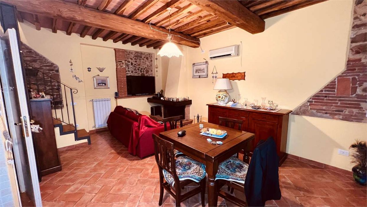Terratetto a Parezzana completamente ristrutturato, Terratetto centrale elevato su due livelli. completamente ristrutturato in stile rustico, composto da; piano terra, ingresso soggiorno con camino e angolo cottura, ripostiglio, al primo piano, disimpegno zona note, camera matrimoniale, stanza armadi e bagno. A corredo due posti auto e ripostiglio esterno con locale lavanderia. CLASSE ENERGETICA: G 290 kWh/m3 a