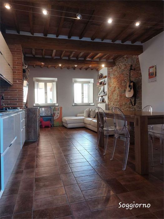 Porcari, terratetto completamente ristrutturato in stile rustico in zona collinare ma vicino a tutti i servizi. L' immobile è elevata su tre livelli ed è composta da: piano terra ingresso in veranda dove troviamo soggiorno con cucina con porta per accedere all'altra veranda sul dietro e bagno; al primo piano, disimpegno, una camera matrimoniale, una camera singola e bagno con vasca, al piano superiore mansarda open space con bagno dove è possibile creare altre due camere. A corredo due posti auto. Predisposizione per i pannelli solari, aria condizionata, zanzariere, impianto d'allarme, riscaldamento a metano infissi in legno con doppi vetri. CLASSE ENERGETICA: D